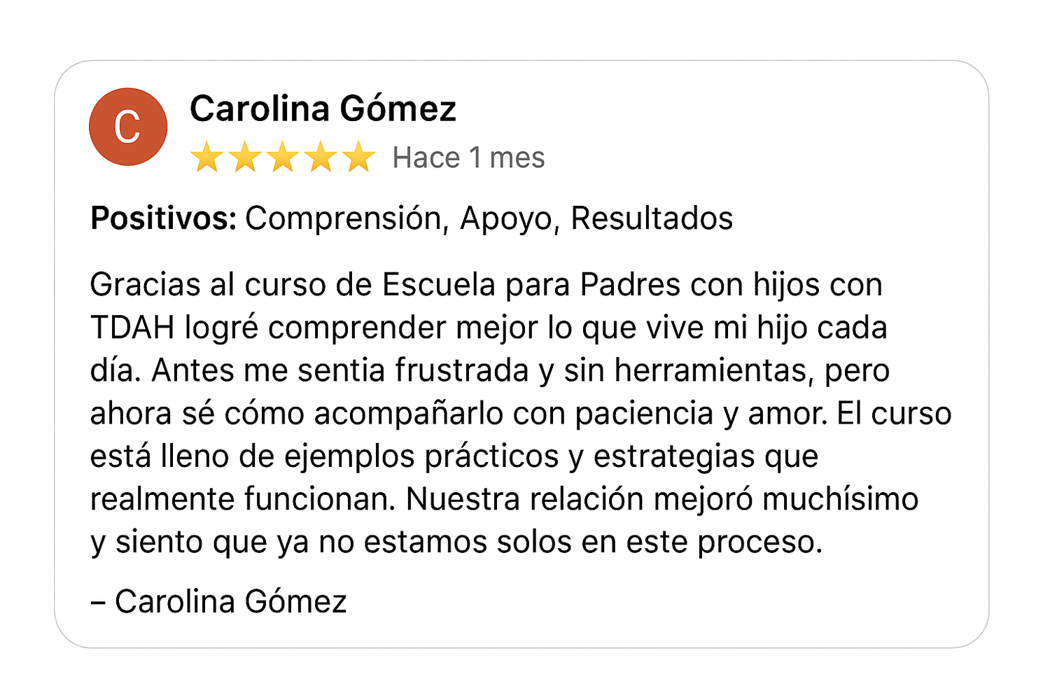 No importa si eres papá, docente o profesional de la salud: este curso te dará las herramientas prácticas y efectivas para acompañar mejor a niños con TDAH, ganar confianza y transformar su desarrollo.